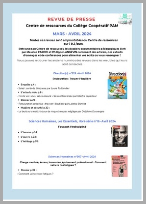 H 1 REVUE DE PRESSE MARS - AVRIL 2024