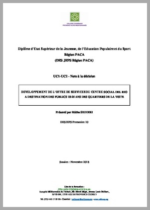 H 1 DEVELOPPEMENT DE L'OFFRE DE SERVICES DU CENTRE SOCIAL DEL RIO A DESTINATION DES PUBLICS 18-25 ANS DES QUATIERS DE LA VISTE