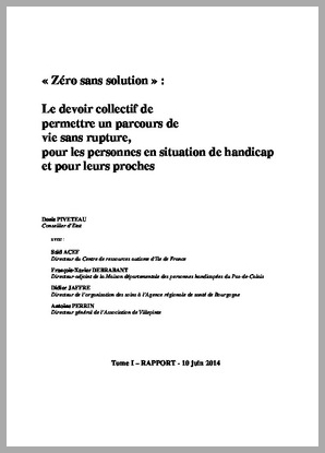 H ZERO SANS SOLUTION - Rapport PIVETEAU : le devoir collectif de permettre un parcours de vie sans rupture, pour les personnes en situation de handicap et pour leurs proches